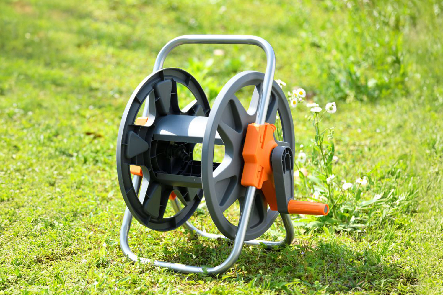 45 metreye kadar 1/2" veya 13 mm hortum saklayabilirsiniz. (Bu ürün hortumsuzdur) Alet gerektirmeden kolay montaj. Kolay çevrilebilen krank kolu hortumu sarmayı kolaylaştırır. Pas ve korozyona dayanıklı.